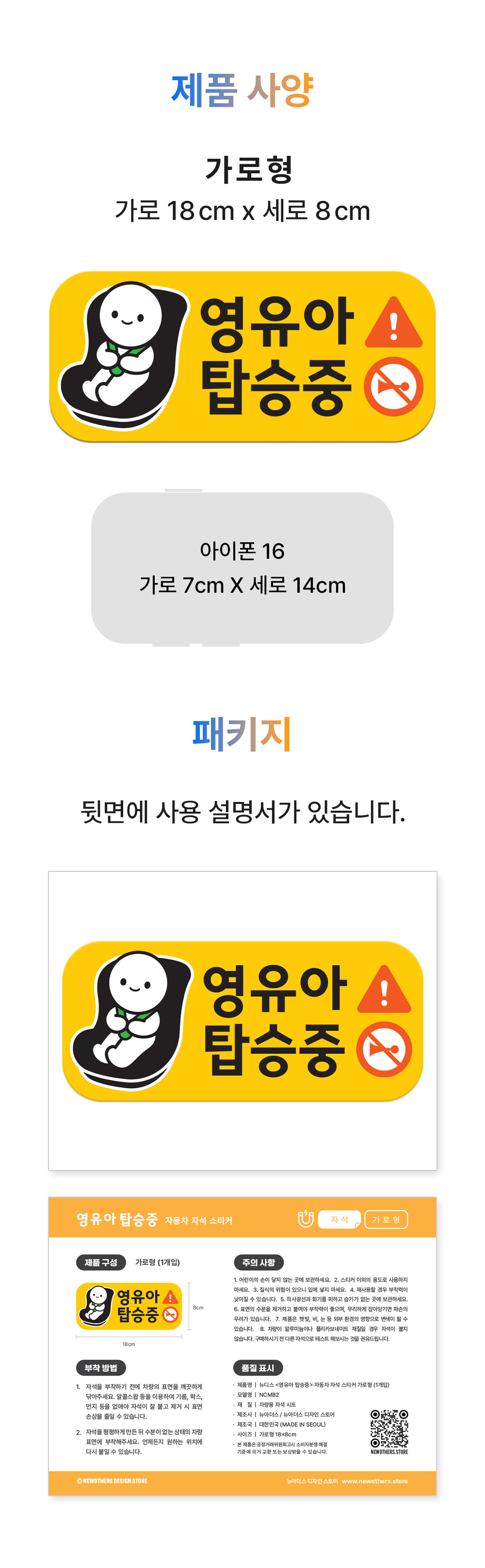 <영유아 탑승중>자동차 자석 스티커 (가로형 자석)