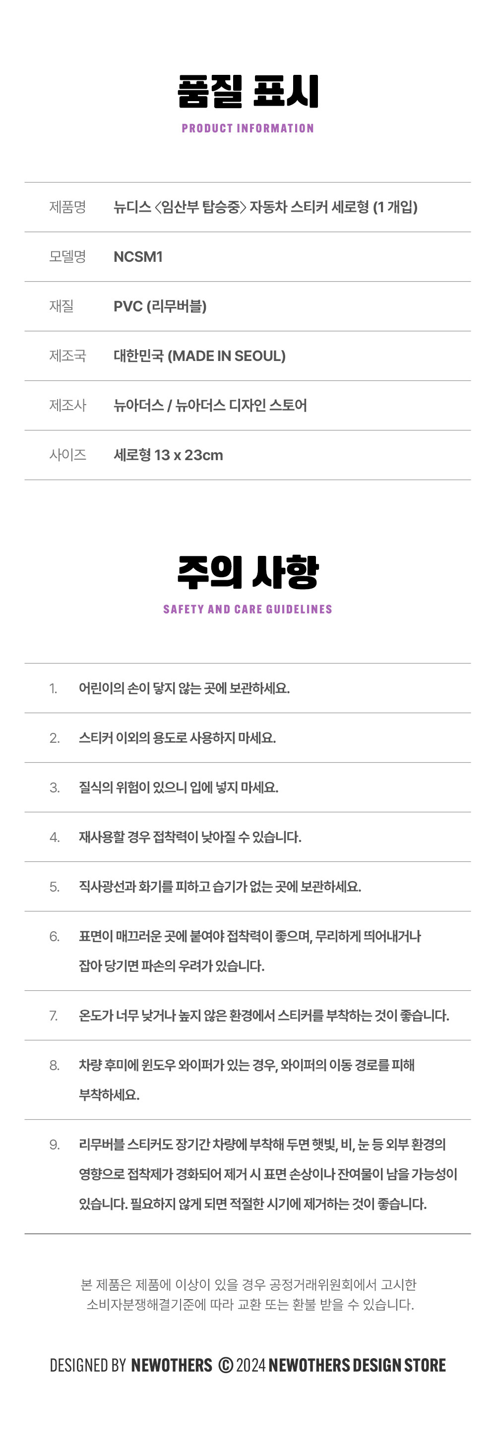 <임산부 탑승중> 자동차 스티커 (세로형 스티커)