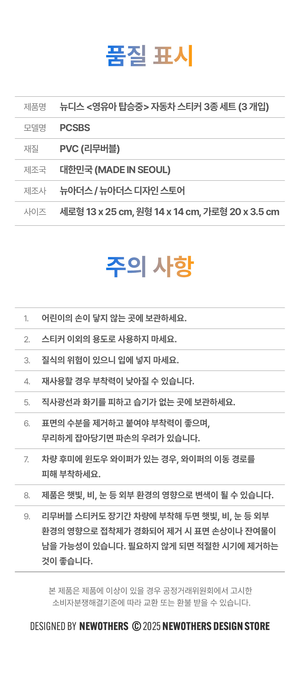 <영유아 탑승중> 자동차 스티커 (3종 스티커 세트)