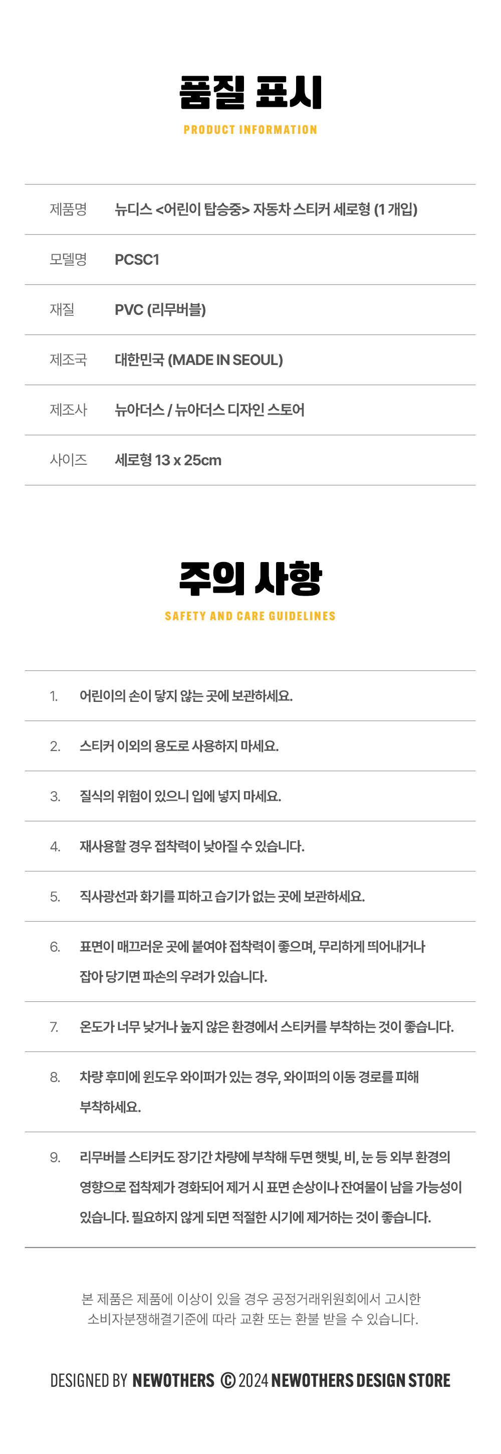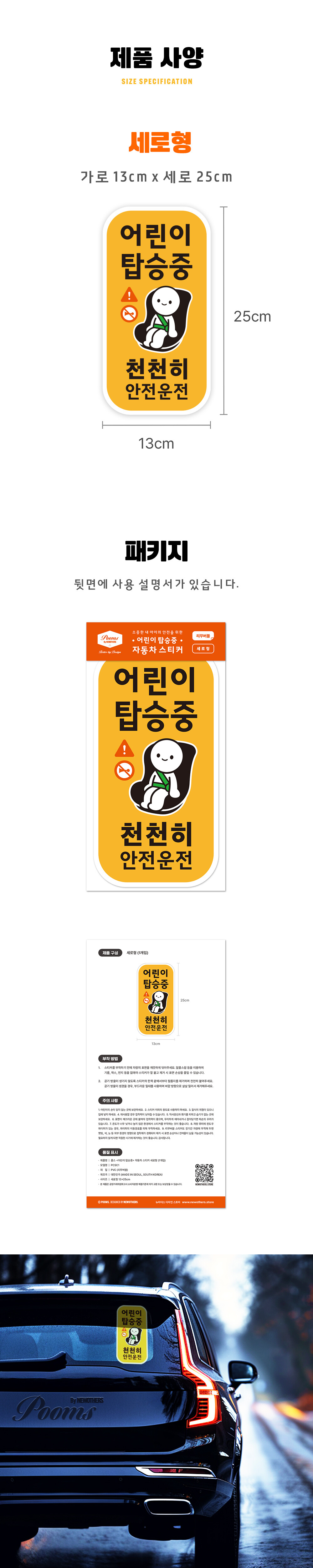 <어린이 탑승중> 자동차 스티커 (세로형 스티커)